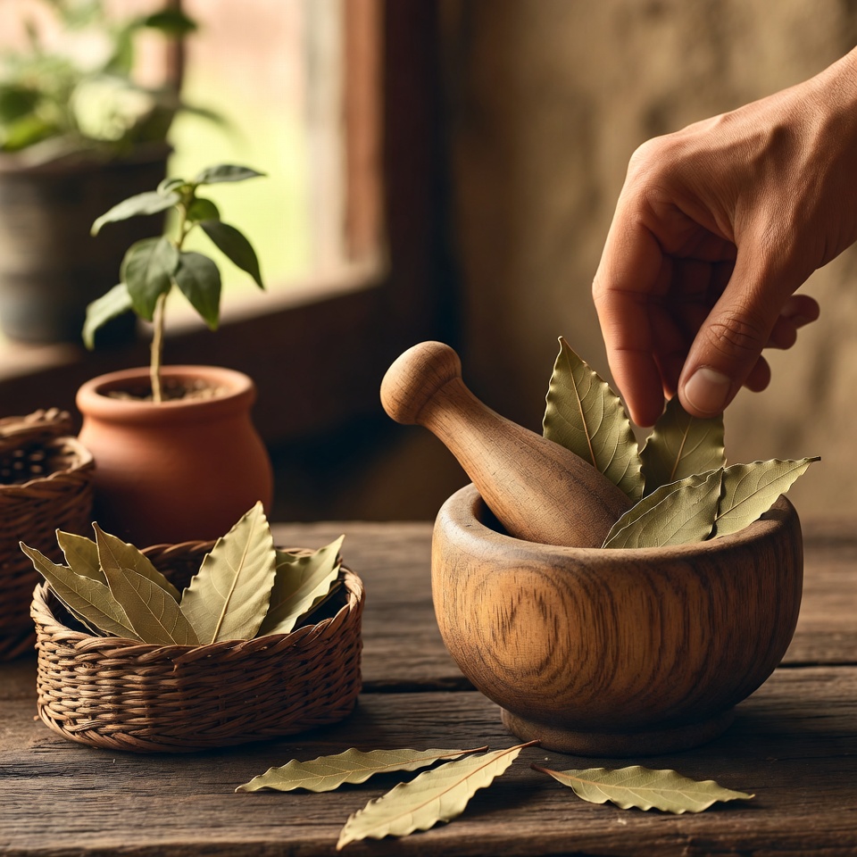 - Tritura ligeramente las hojas de laurel para liberar mejor sus aceites esenciales.