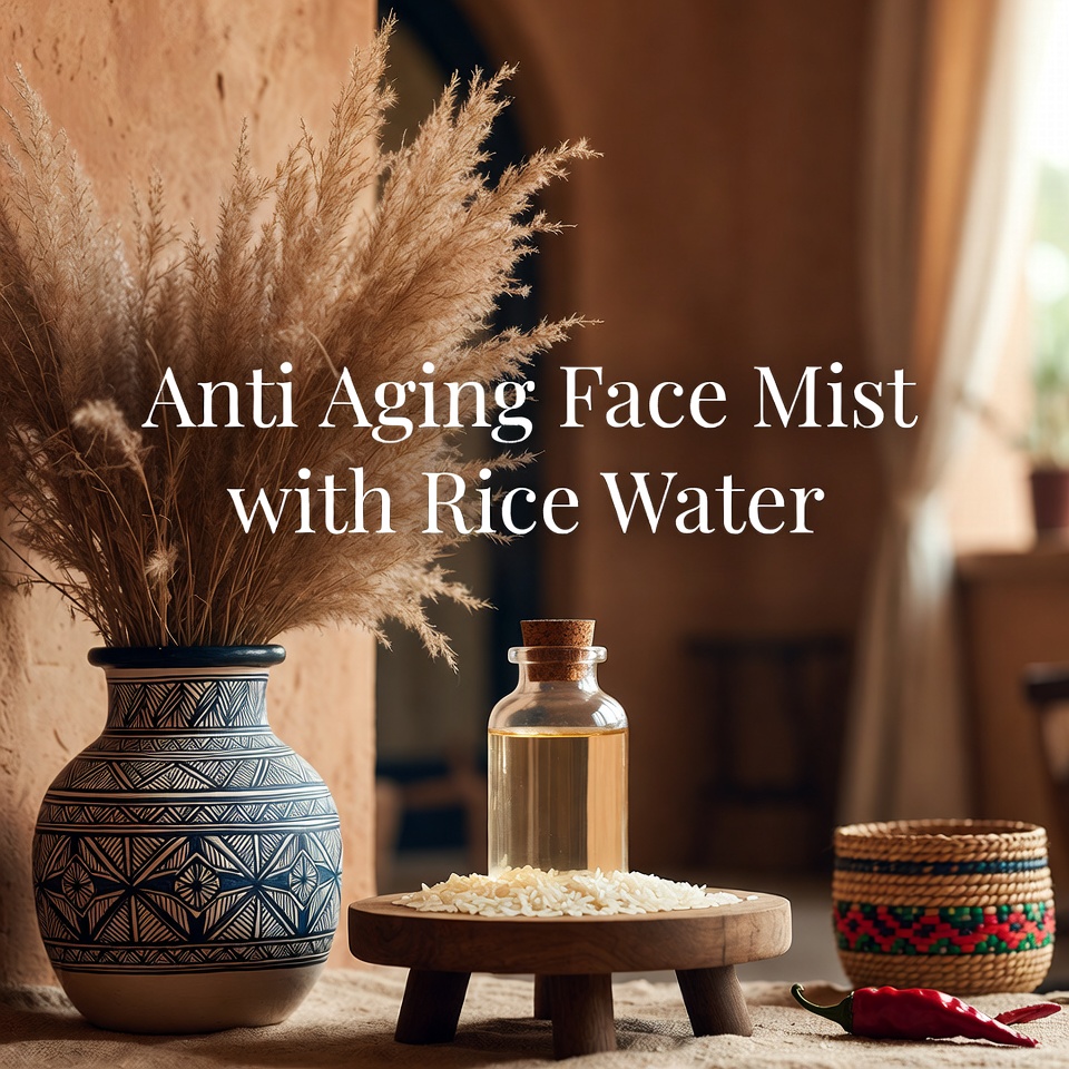 Bruma facial casera de agua de arroz para una piel hidratada y luminosa