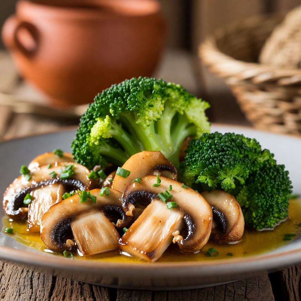 Champiñones y brócoli al ajillo