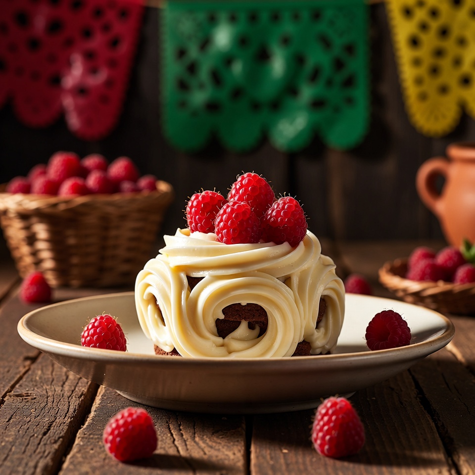 • Añade cucharadas de salsa de frambuesa repartidas sobre la superficie.