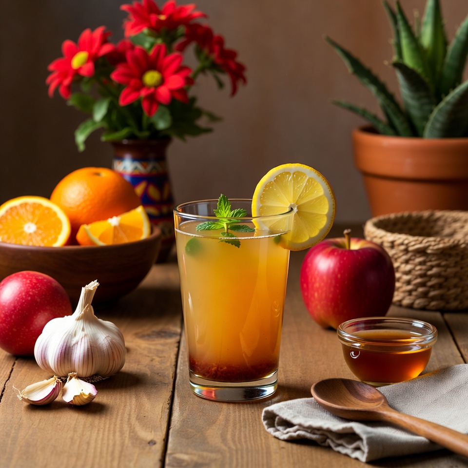 Jugo para la salud del corazón con ajo, limón y vinagre de manzana