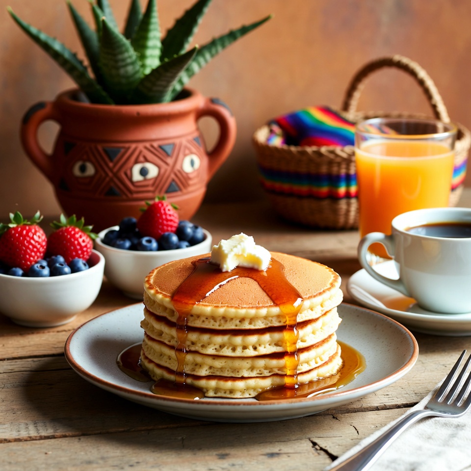 2. Sirve los panqueques calientes con tus acompañamientos favoritos: miel, sirope de arce, frutas frescas, mermelada o un toque extra de mantequilla.