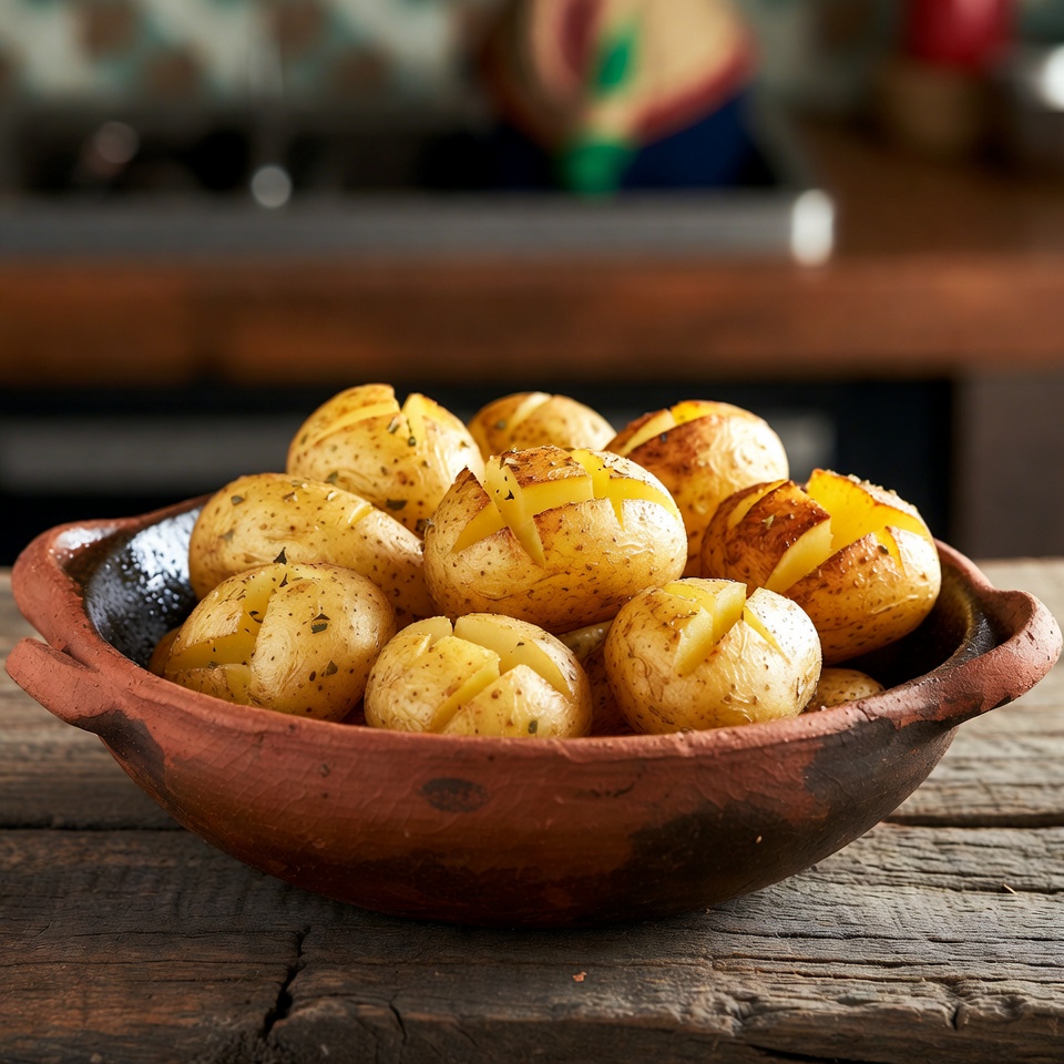 Si buscas una receta sencilla, sabrosa y perfecta como acompañamiento, estas patatas al horno son una excelente opción. Quedan doradas por fuera, tiernas por dentro y llenas de sabor gracias al toque de ajo, pimienta y romero. Además, los cortes en la superficie ayudan a que los condimentos penetren mejor y aporten una textura aún más apetecible.