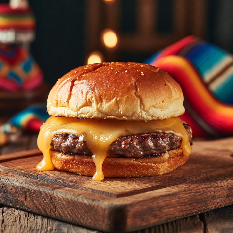 Usa una hamburguesa vegetal (por ejemplo, tipo Beyond Meat) y queso vegano para una opción sin carne. -