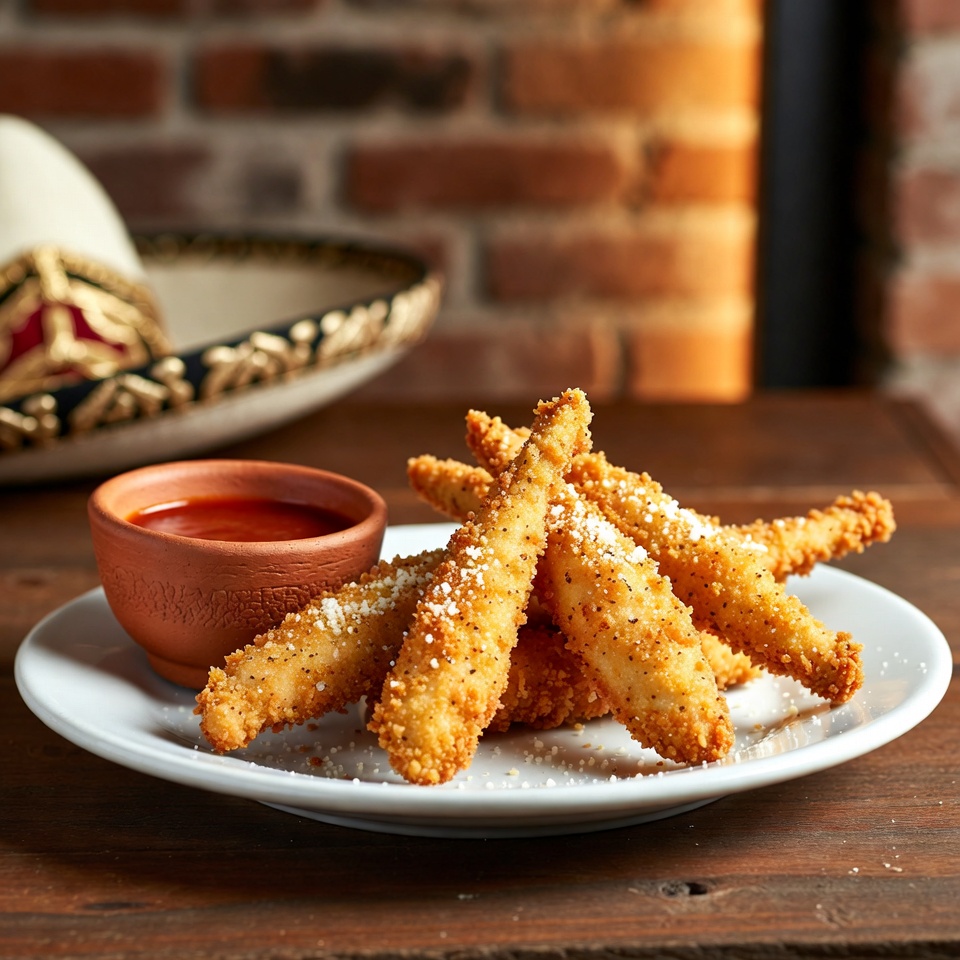 Las tiras de pollo crujientes con parmesano combinan un sabor salado y ligeramente “quesoso” con una textura dorada y crujiente que resulta irresistible. Son fáciles de preparar y funcionan tanto como aperitivo, plato principal o parte de una mesa de picoteo para fiestas.